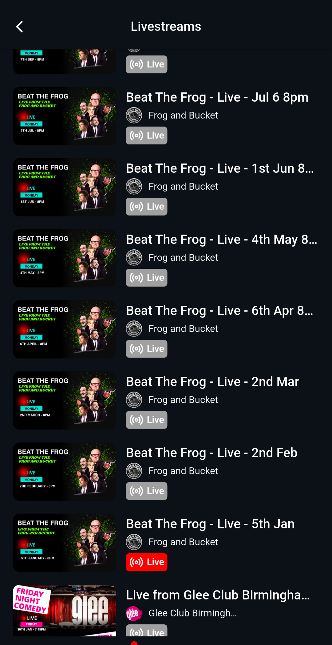 If a livestream won't play, a show stops mid-punchline or something just feels off, we'll post about it here as soon as we can.